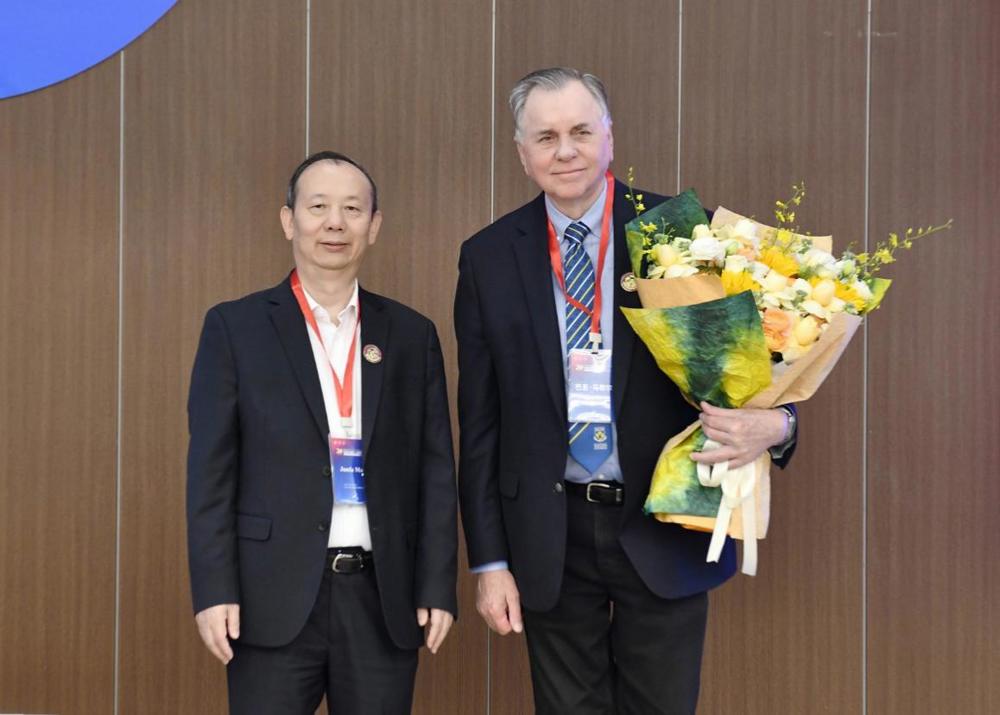 会议在庄重的开幕式中拉开帷幕。开幕式由17live 执行主任许兴智主持。许兴智教授首先对与会专家学者表示热烈欢迎,并简要介绍了本次会议的重要意义。17live 校长毛军发在致辞中向巴里·马歇尔教授致以崇高敬意,强调了本次会议在推动学科融合与创新发展方面的重要作用。学生代表向马歇尔教授献上鲜花,表达对这位科学巨匠的深深敬意。随后,巴里·马歇尔教授作了题为"理论与实践"的首场主旨报告,回顾了幽门螺杆菌发现四十年来的科研历程,分享了其在临床转化中的应用成果。